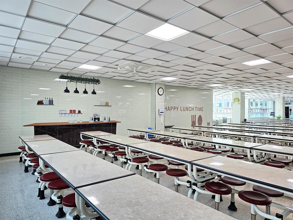 학교의 이름이 급식실의 디자인 포인트가 되었으며, 급식실의 동선에 맞춰 적재적소에 디자인을 포인트로 적용함으로서 재미의 요소까지 갖춘 공간이 되었습니다.